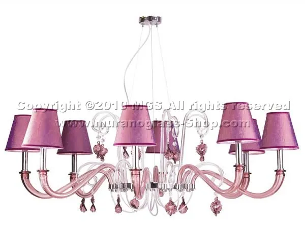 Beau lustre de couleur améthyste avec des nuances, des finitions en métal chromé.