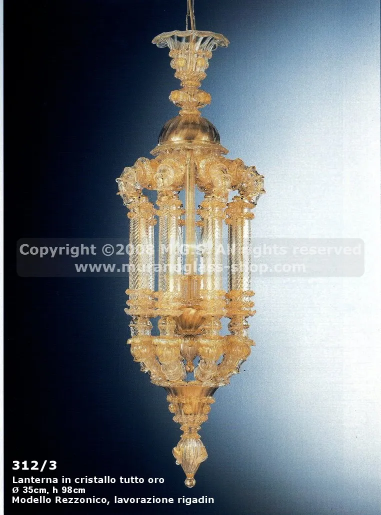 Lanterne en cristal tout l'or, modèle Rezzonico, le traitement rigadin.